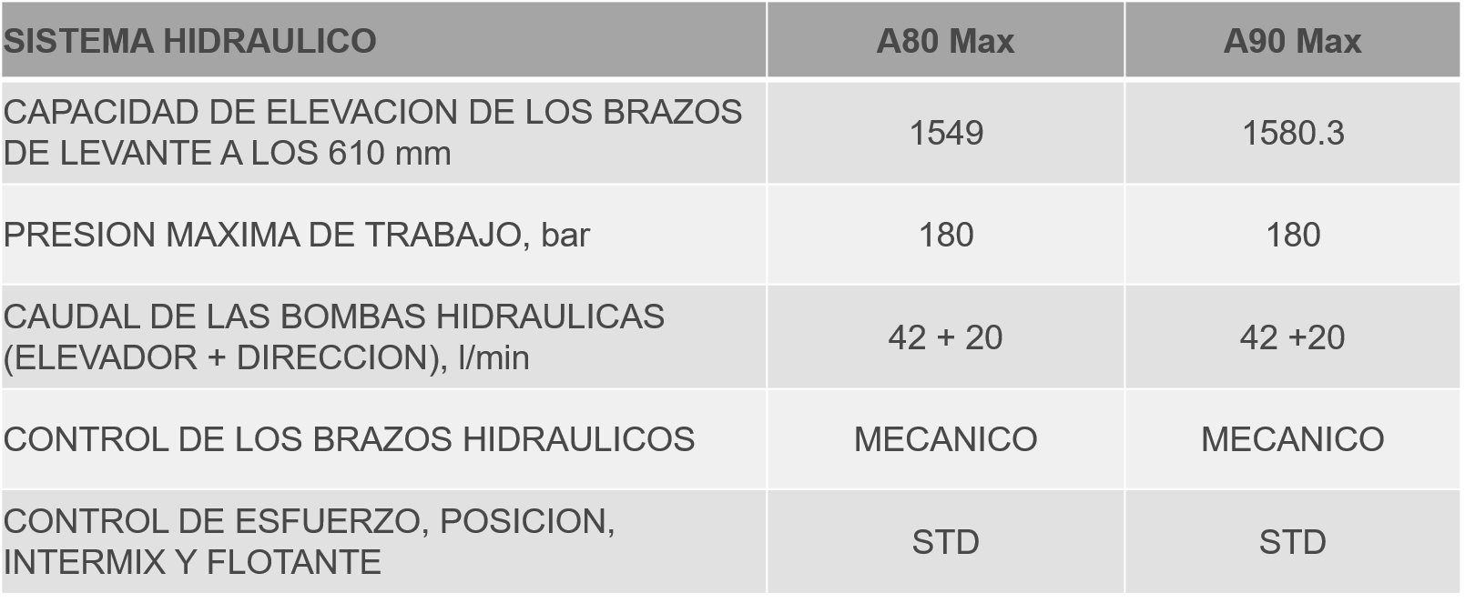 La serie A-max producto de la evolucion de nuestra legendaria serie C-L, viene a revolucionar el sector de los 80 y 90 hp, con un diseño moderno, agradable, con faros integrados al cofre. Ambos modelos están equipados con motor Perkins 1104D (Tier 3) de 4 cilindros, el modelo A90 Max con motor de aspiracion turbo, el motor especialmente diseñado para el uso agrícola proporciona prestaciones excelentes. Gracias a una excelente relación peso/potencia de 37 kg/hp, la versión A-Max resulta ideal para labores en campo abierto así como para aplicaciones de la toma de fuerza y operaciones de transporte. La versión A-Max, facilita el trabajo en los cultivos entre hileras. Diseñada para ofrecer una combinación única de robustez y fiabilidad, esta gama de tractores cuenta con soluciones técnicas eficientes dirigidas a minimizar los gastos de explotación. La transmisión, con embrague doble tipo seco y cambio de velocidades con 12 marchas adelante y 12 atrás, cuenta con un inversor mecánico sincronizado. El puesto de conducción espacioso con las palancas de velocidades laterales confirman el extremo cuidado que se ha puesto en el diseño. El depósito de 65 litros, montado entre el motor y el volante, y los pedales del freno, articulados bajo la plataforma, le confieren a este modelo la típica configuración de un tractor “utility”. Los nuevos tractores A-Max le sorprenderán por su ergonomía y sencillez de diseño.