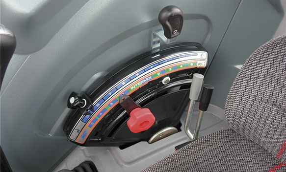 TRANSMISIÓN El cambio base de tipo modular (Speed Four) cuenta con 4 velocidades en 3 gamas que nos proporciona 12 marchas adelante y 12 atrás y está disponible en cuatro distintas versiones,que combinado con un overdrive (multiplicador) que viene instalado de serie nos proporciona un total de 24 marchas adelante y 12 atrás. El tractor con overdrive alcanza una velocidad máxima de 40 km/h a revoluciones nominales del motor. La palanca del inversor colocada de forma ergonómica al lado del volante permite invertir el sentido de marcha con la máxima facilidad. La misma palanca permite también accionar si asi se requiere el overdrive.