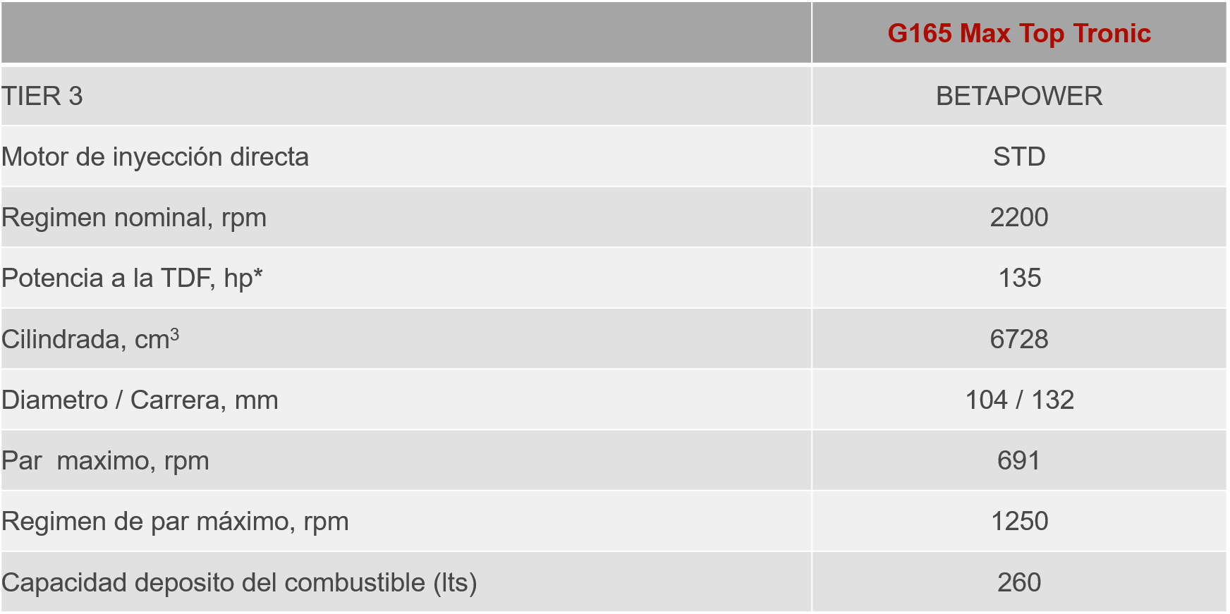 Los nuevos tractores cabinados de la gama G-Max están equipados con motores Betapower Tier 3 turbointercooler, de 6 cilindros, que aseguran un mayor ahorro en el consumo de combustible y de bajos niveles de emisión de contaminantes. Equipados con una transmisión Power Shift, con inversor de marcha electrohidráulico, y con creeper, de 105 velocidades de avance por 36 de reversa, le confiere a este gran tractor total autonomia y gran estabilidad para una amplia gama de aplicaciones, conservando su elevada fuerza de tracción, con reducidos costos de producción. Se ha incorporado una toma de fuerza de conexión electrohidráulica de gran capacidad y máxima eficiencia, con dos velocidades de 540 y 1000 rpm. Su elevador hidráulico de control electrónico le otorga gran capacidad de levante de hasta 8400 kilogramos, y su mayor distancia entre ejes lo hacen ideal para trabajar con implementos de gran tamaño, sin sacrificar la estabilidad del tractor.