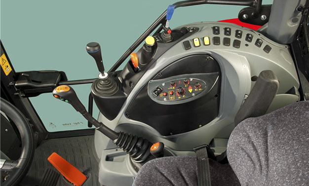 La cabina es amplia y confortable con los mandos dispuestos de manera ergonómica, equipada con aire acondicionado, y con dos puertas que permiten el acceso por ambos lados del tractor. SUBIR